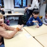 Die Drittklässler haben einen Weihnachtsmarkt in der Schule gemacht. Neben uns, den Raben, standen die Elche. Die haben auch schöne Sachen verkauft. Als erstes ist fast keiner zu unserem Stand gekommen, aber auf einmal waren ganz viele Kinder gleichzeitig da. Wir hatten Sternkugeln, die haben 50 ct. gekostet und wir hatten Schneemänner aus Wäscheklammern mit oder ohne Weihnachtskarte. Außerdem gab es Vögel aus Leder für 1 Euro. Wir haben alles zusammen mit den Eltern selbst gebastelt. Die meisten Kinder haben die Sternkugeln gekauft. Das Verkaufen hat uns allen sehr viel Spaß gemacht!